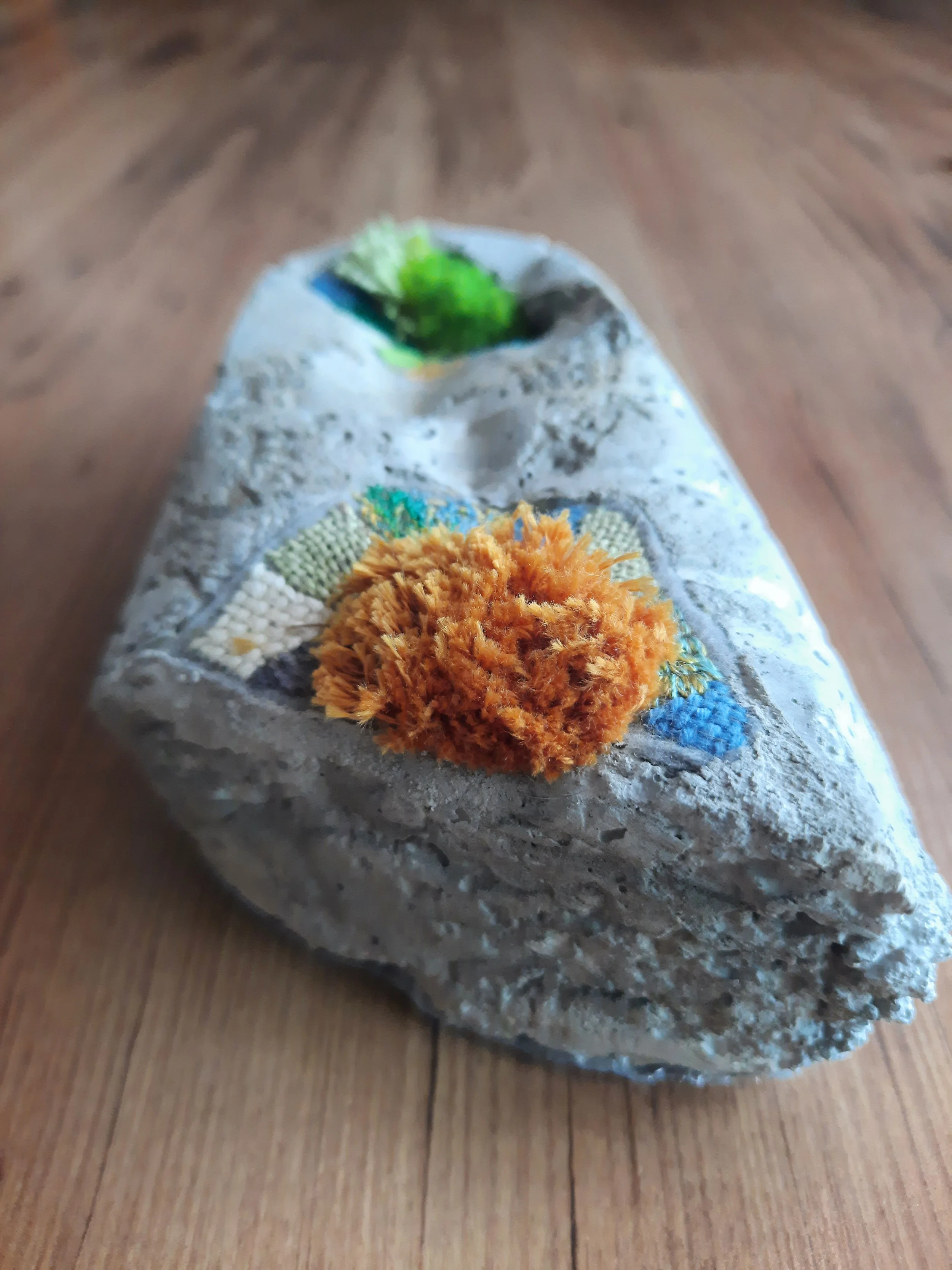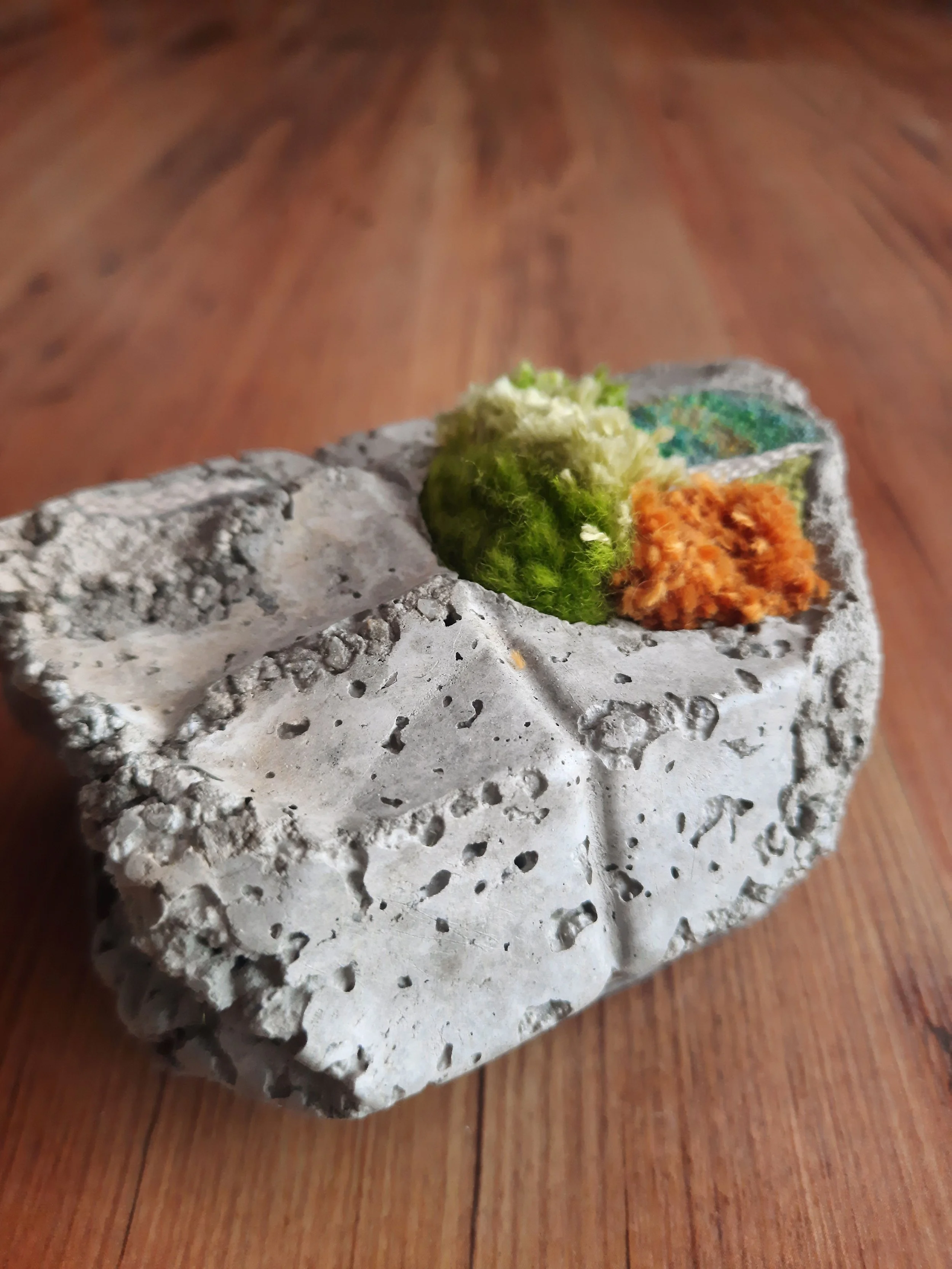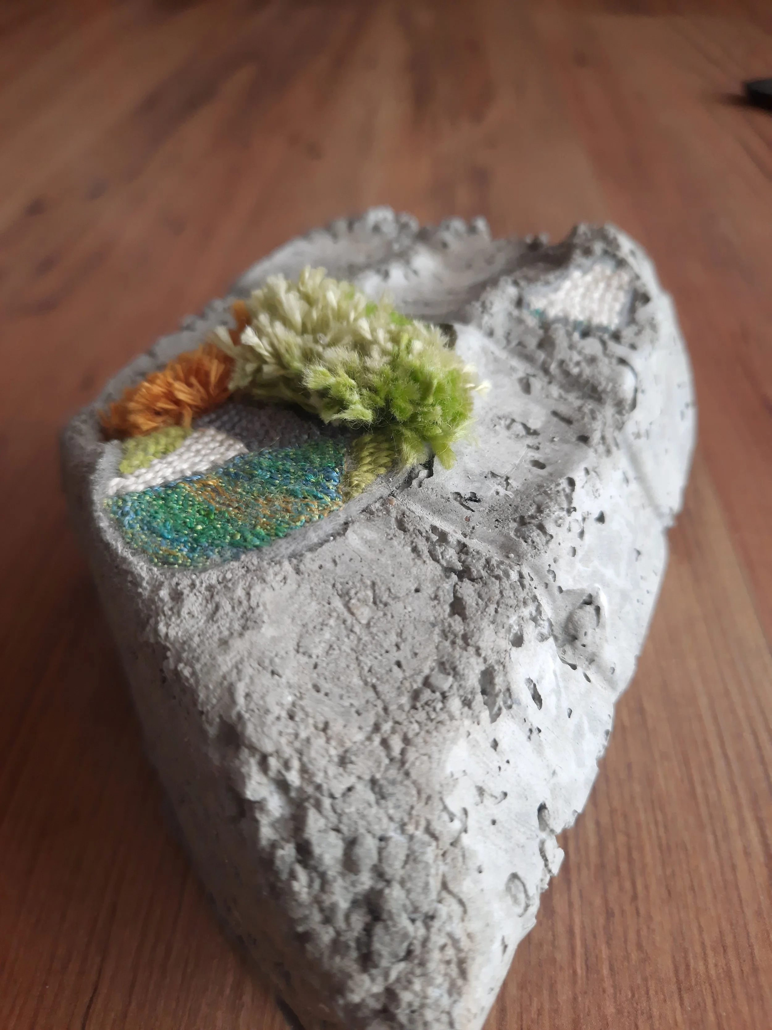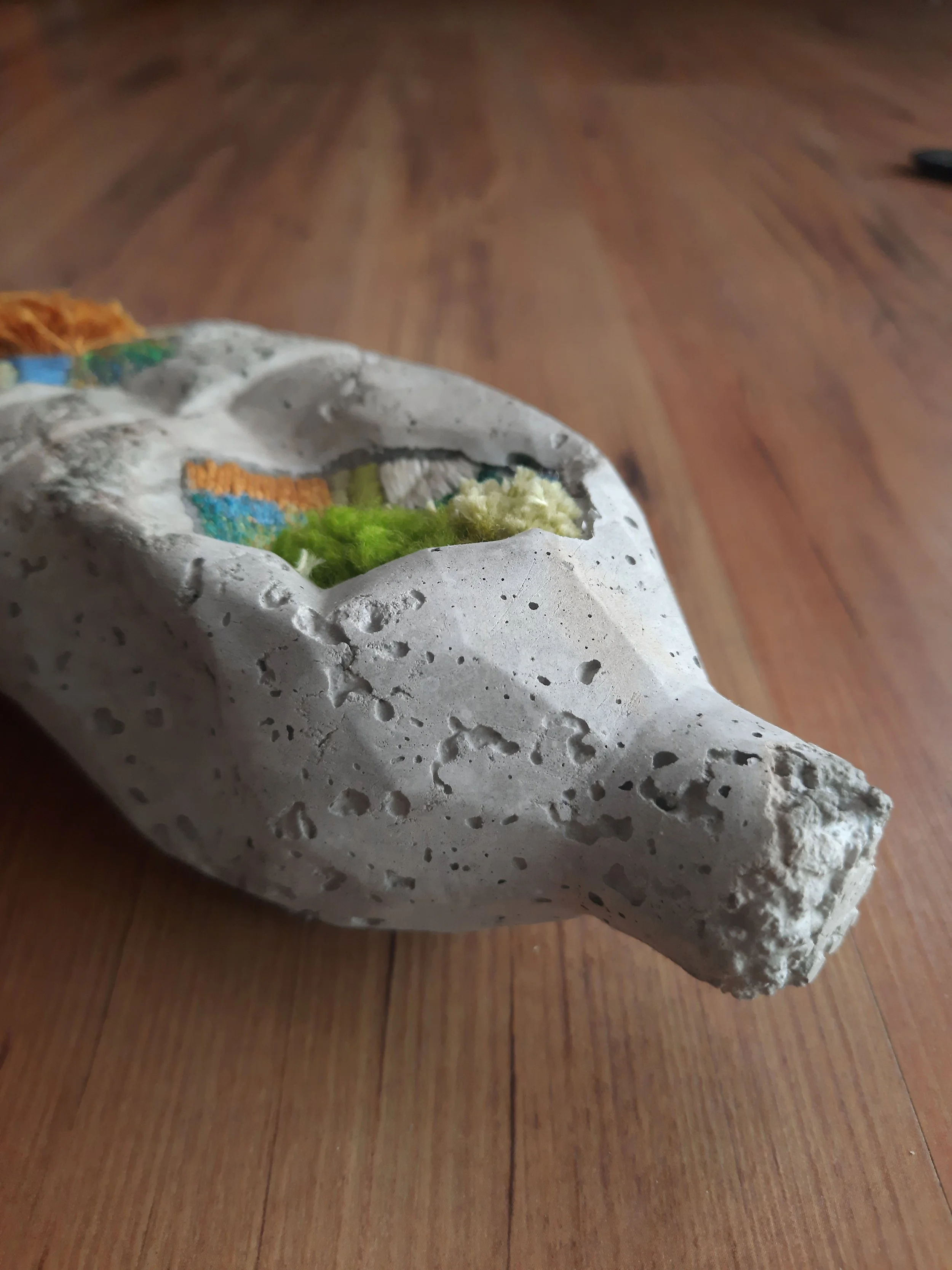 These concrete bottles, heavy with the weight of discarded emotions, serve as vessels for the burdens of emotional dumping. Over time, they decay, symbolizing the decomposition of unresolved feelings. Yet, as moss begins to grow over these discarded forms, it signifies a process of renewal—transforming what was once burdensome into a site of potential healing and new life.