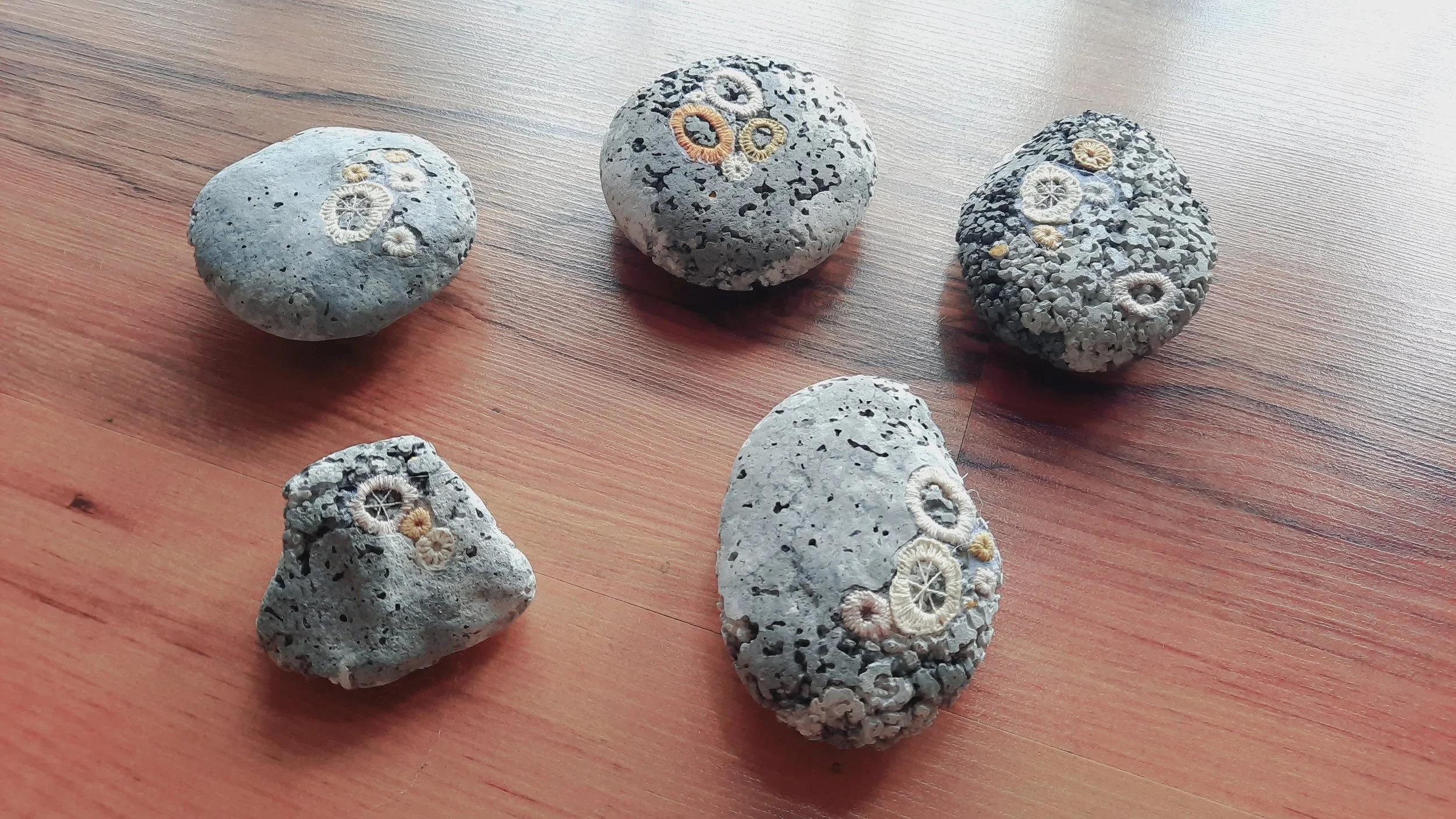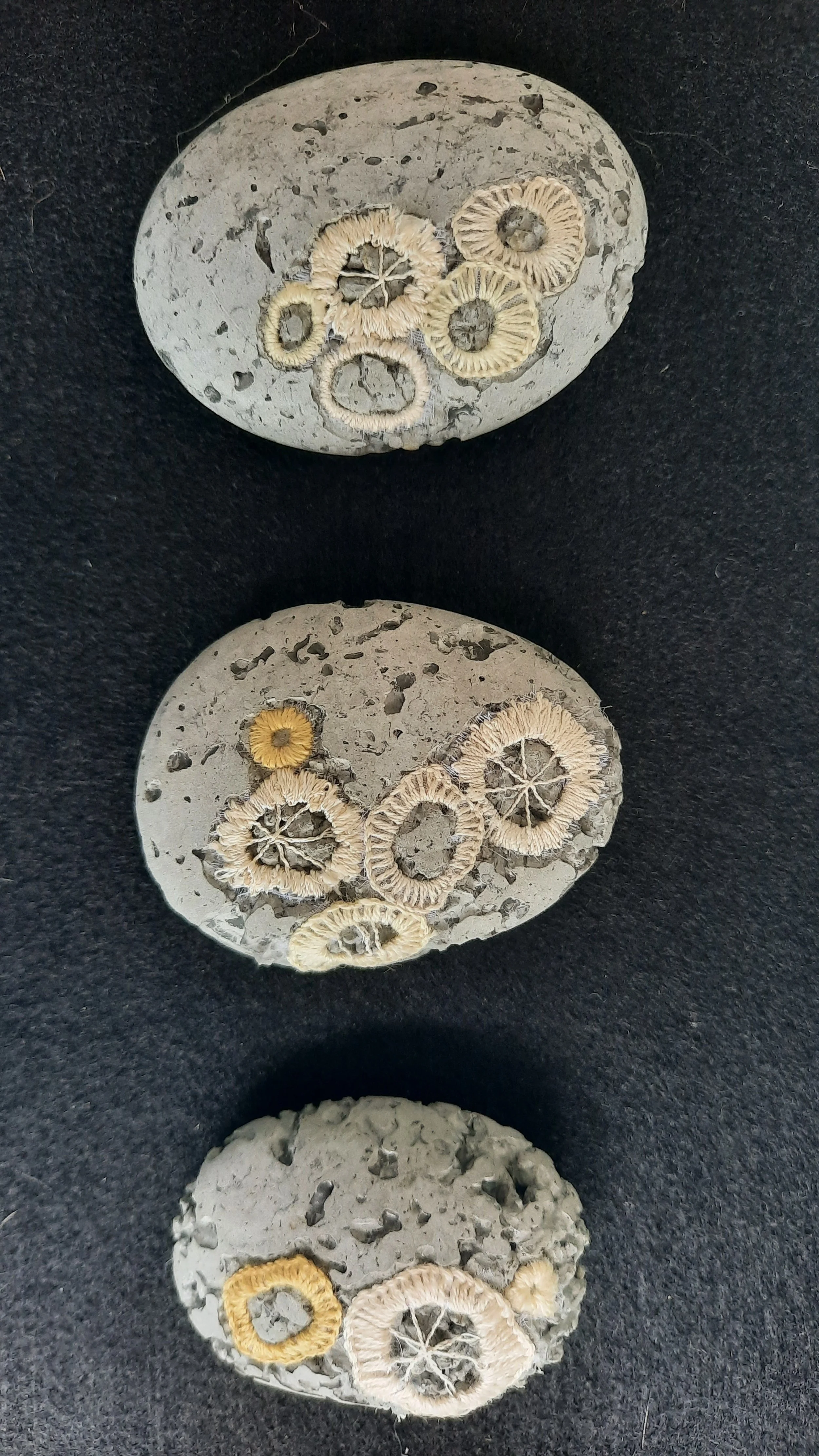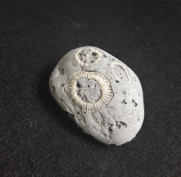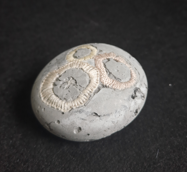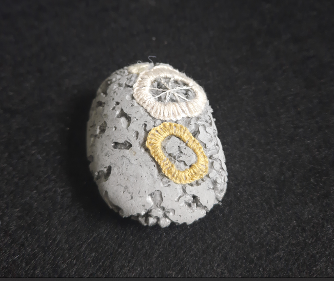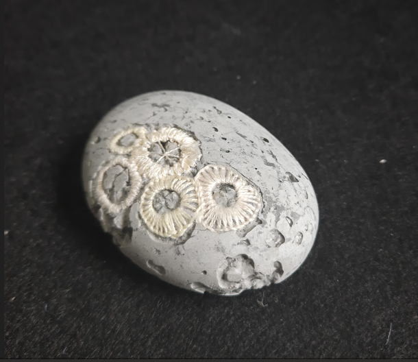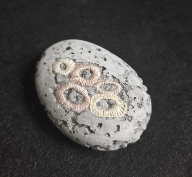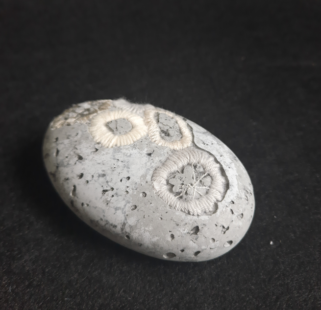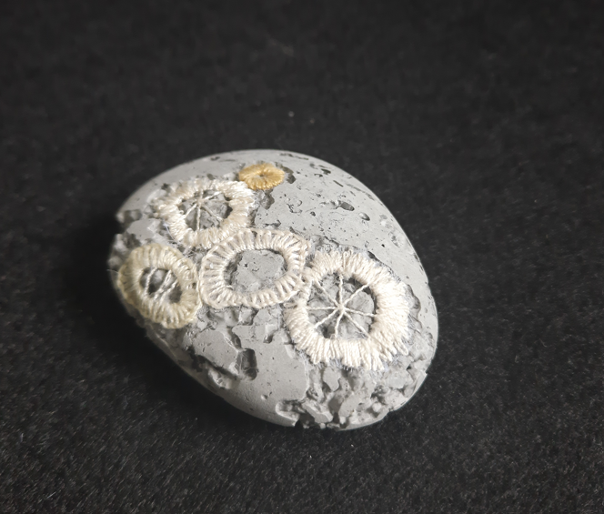 The coral fossil artworks are not just a piece of art but a versatile addition to your home or office. They can be used as paperweights or desk ornaments, adding a touch of marine elegance to your workspace. They stand as unique conversation starters, drawing the eye and sparking curiosity. Their intricate patterns and textures, are created using Agy’s skills in embroidery and concrete casting. Whether you’re an art connoisseur, a nature enthusiast, or someone who appreciates unique decor, these coral fossils are sure to captivate your imagination and elevate your space.